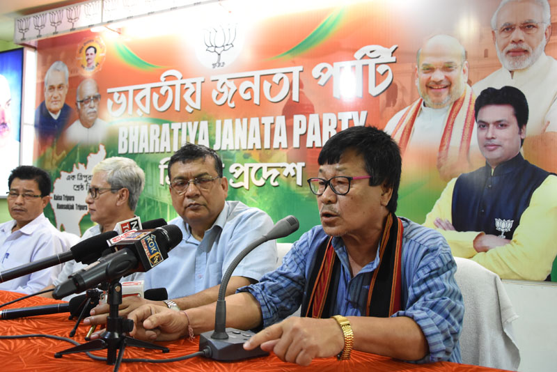 এদিন তিনি ক্ষোভের সুরে বলেন, জনজাতিরা বলতেন এডিসি তাঁদের রক্ষাকবচ হবে৷ কিন্তু, সিপিএমের শাসনে এডিসিতে কোন কাজই হচ্ছে না৷ তাঁর দাবি, এই অবরোধ আন্দোলনে রাজ্যের করুণ অবস্থার জন্য জনজাতি বঞ্চনাই মুখ্য কারণ৷ তিনি জোর গলায় বলেন, সিপিএম বরাবর উস্কানিমূলক রাজনীতি করে থাকে৷ আইপিএফটি’র অবরোধ আন্দোলনে অর্থ সহ সবরকম সহায়তা করছে সিপিএম৷ কারণ, তারা রাজ্যে অশান্তি হউক চাইছে৷ তাঁর অভিযোগ, ভোট আসলেই এধরনের পরিস্থিতি কায়েম করে সিপিএম৷ তাঁর দাবি, যখনই সিপিএম ক্ষমতায় থাকে তখনই উগ্র ট্রাইবেলবাদ তৈরি হয়৷ সিপিএম পাহাড়ে থাকলে এক সুর, ক্ষমতায় থাকলে অন্য সুর তুলে৷ তিনি জোর গলায় বলেন, জাতীয় সড়ক ও রেল অবরোধের জন্য বিজেপি কোনভাবেই দায়ী নয়৷ পাশাপাশি গ্রামোন্নয়ন মন্ত্রী নরেশ জমাতিয়ার বিরুদ্ধেও তোপ দাগেন তিনি৷ প্রধানমন্ত্রীর দপ্তরের মন্ত্রী ড জীতেন্দ্র সিংহের উসকানিতে আইপিএফটি এই সিদ্ধান্ত নিয়েছে গ্রামোন্নয়ন মন্ত্রী নরেশ জমাতিয়ার এই বক্তব্যের তীব্র প্রতিবাদ করে তিনি বলেন, বিজেপির মন্ত্রীরা সকলের সাথেই দেখা করেন৷ কিন্তু, রাজ্যভাগের দাবিকে প্রশ্রয় দেন না৷ তিনি চ্যালেঞ্জ ছুড়ে দিয়ে বলেন, গ্রামোন্নয়ন মন্ত্রী নরেশ জমাতিয়া বলুক কেন্দ্রীয় মন্ত্রীর সাথে আইপিএফটি’র কি কথা হয়েছে৷ তাঁর কটাক্ষ, আসলে বিজেপি’র বিরুদ্ধে বলার কিছু নেই, তাই আবোল তাবোল বকছেন নরেশবাবু৷
