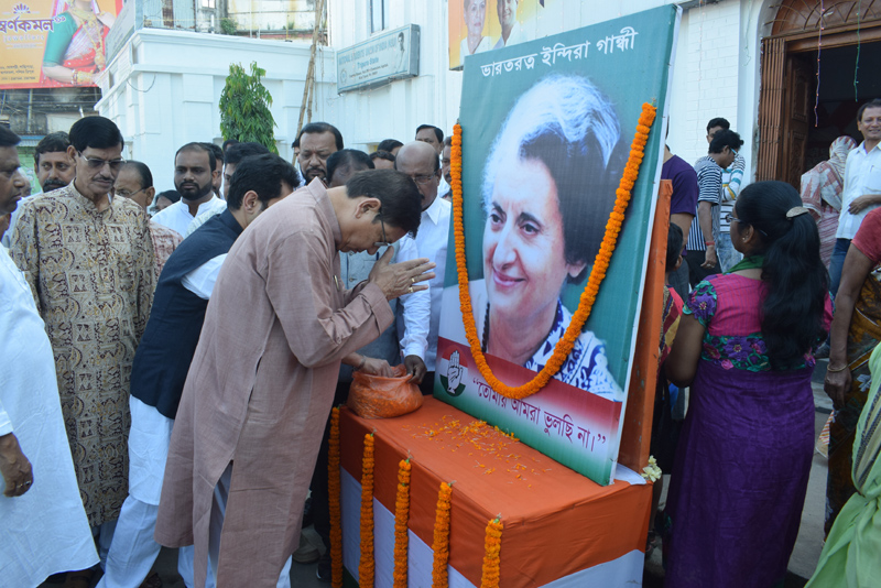 শ্লোগানে ভবন প্রাঙ্গন মুখরিত করার পর ভবন সন্মুখে বেদীতে রক্ষিত ইন্দিরা গান্ধীর প্রতিকৃতিতে কর্মীগন সুশৃঙ্খলভাবে পূষ্পার্ঘ্য অর্পন করে শ্রদ্ধার্ঘ্য নিবেদন করেন এবং গান্ধীঘাটে ইন্দিরাজী সহ অন্যান্য জাতীয় নেতাদের স্মৃতি সৌধে পুষ্পাঞ্জলী নিবেদনের মাধ্যমে অন্তরের অন্তস্থল থেকে গভীর শ্রদ্ধা জ্ঞাপন করেন৷ সংবাদ মাধ্যমের প্রতিনিধিদের নিকট এক সাক্ষাৎকারে ইন্দিরাজীর স্মৃতিচারন করতে গিয়ে প্রদেশ কংগ্রেস সভাপতি শৈশবে মাতৃহীনা এবং স্বাধীনতা আন্দোলনে পিতা জওহরলাল নেহেরুর বহুবার কারাবাসে থাকার ফলে নিয়মিত পিতৃস্নেহ থেকেও বঞ্চিত হন প্রিয়দর্শিনী ইন্দিরা৷ এতদসত্বেও উনি ছিলেন মেধাবী ছাত্রী ও মহাত্মা গান্ধীর সত্যাগ্রহ ও অহিংসা মন্ত্রের দিশারী৷ ১৯৭১ খ্রীঃ ১৬ই ডিসেম্বর ভারত-পাক যুদ্ধে পাক সামরিক বাহিনীর প্রধান নিয়াজী সহ ৯৩ হাজার পাক সেনাবাহিনী ভারতীয় ফৌজের নিকট আত্মসমর্পন করতে বাধ্য হয়েছিলেন৷ ত্রিপুরার উপজাতিদের আর্থ-সামাজিক ও ভৌগলিক অবস্থানের কথা চিন্তা করিয়া ১৯৮৪ খ্রীঃ ২৩ শে আগষ্ট সংবিধান সংশোধনক্রমে ষষ্ঠ তপশীলের মাধ্যমে ত্রিপুরা উপজাতি স্বশাসিত জেলা পরিষদ বিল সংসদে প্রনয়ন করে তা বাস্তবায়িত করেন৷ সেই প্রেক্ষাপট তোলে ধরেন তিনি সারা রাজ্যের সঙ্গে বিশালগড় ব্লক কংগ্রেস যথাযোগ্য মর্যাদায় পালন করে ইন্দিরা গান্ধীর জন্মশতবর্ষ৷ পি সি সি সম্পাদক জয়দুল হুসেন কর্মীদের প্রিয়দর্শীনির ভাবাদর্শ পাথেয় করে কর্মীদের চলার পরামর্শ দিয়েছেন৷
