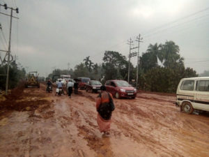 জাতীয় সড়ক মরণ ফাঁদে পরিণত হয়েছে৷ সামান্য বৃষ্টিতেই রাস্তা দিয়ে বড় বড় গাড়িগুলি চলাচল করতে পারে না৷ কেএমসি কর্তৃপক্ষের আধুনিক প্রযুক্তির মাধ্যমে জাতীয় সড়ক নির্মাণ করলেও নিত্যদিন নানা সমস্যায় পড়তে হচ্ছে গাড়ির চালক ও দূরপাল্লার যাত্রীদের৷ যদিও কেএমসি সংস্থা দ্রুতগতিতে কাজ চালাচ্ছে৷ এই সংস্থার বহু অভিযোগ ও গাফিলতির ফলে নিত্যযাত্রী থেকে শুরু করে সাধারণ জনগণের দুর্ভোগ পোহাতে হচ্ছে৷ সামান্য বৃষ্টির ফলে রাস্তাটি খুব করুণ দশা হয়ে যায় যার এমনই একি চিত্র ধরা পড়েছে৷ বৃহস্পতিবার অফিস টাইমে সরকারি কর্মচারীরা খুব বিপদে পড়েছে৷ যাত্রীবাহী একটি বাস মাঝরাস্তায় আটকে পড়ে৷ তখনই চড়িলামের ছেচরীমাই এলাকা থেকে পরিমল চৌধুরী এলাকা পর্যন্ত টানা দুঘন্টা যান চলাচল স্তব্ধ হয়ে পড়ে৷ দীর্ঘ লাইন লেগে যায় অসংখ্য গাড়ির৷ দেখা যায় যান চলাচল যখন স্তব্ধ হয়ে পড়ে তখন রাস্তা সংস্কারের জন্য কেএমসি সংস্থার তরফ থেকে কোন প্রকার ব্যবস্থা গ্রহণ করা হয়নি৷ বিশ্রামগঞ্জের পুষ্করবাড়ি এলাকা থেকে শুরু হয়ে চড়িলাম পরিমল চৌমুহনীর ব্রীজ সংলগ্ণ এলাকা পর্যন্ত জাতীয় সড়কের অবস্থা ভরে উঠেছে খানাখন্দে ও কাঁদামাটিতে গর্তগুলি জলে পরিপূর্ণ হয়ে থাকায় চালকরা মুশকিলে পড়েছে৷