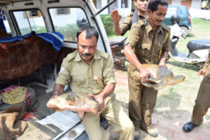 হচ্ছে কচ্ছপ৷ এই ব্যাপারে প্রশাসনিক কোন ভূমিকা নজরে আসছে না৷ শেষ পর্যন্ত সচেতন নাগরিকরা প্রশাসনের কুম্ভনিদ্রা ভঙ্গ করলেন৷ মঙ্গলবার শহরের মঠচৌমুহনী বাজার থেকে দুটি কচ্ছপ উদ্ধার করেছে বন দপ্তরের কর্মীরা৷ কচ্ছপগুলির ওজন প্রায় পঞ্চাশ কেজি৷