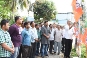 নিজস্ব প্রতিনিধি, আগরতলা/তেলিয়ামুড়া, ৬ এপ্রিল৷৷ সারা দেশের সঙ্গে ত্রিপুরাতও ভারতীয় জনতা পার্টি তাদের ৩৭তম প্রতিষ্ঠা দিবস পালন করেছে৷ সারা রাজ্যের বিভিন্ন স্তরের পার্টি অফিস গুলিতে বৃহস্পতিবার যথাযোগ্য মর্যাদায় পার্টির পতাকা উত্তোলন করা হয়৷ একেই সঙ্গে ভারতমাতার প্রতিকৃতিতে মাল্যদান করা হয়৷ পার্টির প্রতিষ্ঠাতা দিবস উপলক্ষে আজ সকাল থেকে রাজ্যের বিভিন্ন এলাকায় পার্টি অফিস গুলিতে কর্মীরা সামিল হওয়া শুরু করেন৷ পতাকা উত্তোলনের পর বিজেপির প্রতিষ্ঠার প্রেক্ষাপট বিশ্লেষণ করে শ্যামা প্রসাদ মুখার্জী এবং ডাঃ দিনদয়াল উপাধ্যায়ের চিন্তাধারা এবং দর্শন নিয়ে আলোচনা হয়৷ সাম্প্রতিক কালে ত্রিপুরাতে বিজেপির শক্তি যথেষ্ট বৃদ্ধি পেয়েছে এবং বিগত কয়েকটি উপনির্বাচনে বিজেপি রাজ্য প্রধান দল হিসাবে নিজেদের তুলে ধরতে সক্ষম হয়েছে৷ ফলে রাজ্যব্যাপী আজকের এই অনুষ্ঠানে বিভিন্ন এলাকায় লোকসমাগম লক্ষ্য করা গেছে৷