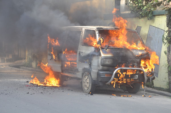 সিএনজি সিলিন্ডারের আগুনে পুড়ল চলন্ত ভ্যান