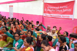 দাবি আদায়ে ধর্ণা অঙ্গনওয়ারী কর্মীদের