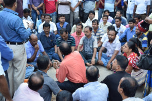 চাকুরীচ্যুত ১০৩২৩ জন শিক্ষকের কপালে চিন্তার ভাঁজ পড়েছে৷ ভবিষ্যত নিশ্চিত অন্ধকারের দিকে, এই আশঙ্কায় শুক্রবার পুজোর দীর্ঘ ছুটির পর অফিস খুলতেই শিক্ষাভবনের সামনে গিয়ে কয়েকশ চাকুরীচ্যুত শিক্ষক ধর্ণা প্রদর্শন করেন৷ তাঁদের একটাই বক্তব্য, সুপ্রিম কোর্টে পুনরায় রাজ্য সরকার ধাক্কা খেলে ১২০০০ অশিক্ষক পদে নিয়োগ নিয়ে জটিলতা দেখা দেবে৷ একই সাথে তাঁদের আশঙ্কা, হয়তবা রাজ্য সরকার যে উদ্দেশ্যে নতুন ১২হাজার অশিক্ষক পদ সৃষ্টি করেছে তাতে চাকুরীচ্যুত শিক্ষকরা সুবিধা পাবেন না৷ এই সমস্ত একাধিক প্রশ্ণে উত্তর জানতেই আজ কয়েকশ চাকুরীচ্যুত শিক্ষক শিক্ষাভবনের সামনে জড়ো হন৷ সেখান থেকে তাঁরা মহাকরণের উদ্দেশ্যে ছুটে যান৷ মূলত, চাকুরীচ্যুত শিক্ষকরা তাঁদের মনে সৃষ্টি হওয়া একাধিক প্রশ্ণের স্পষ্টিকরণ জানতে শিক্ষামন্ত্রীর সাথে দেখা করার জন্য মহাকরণে যান৷ এদিন চাকুরীচ্যুত শিক্ষকদের পাঁচ সদস্যক এক প্রতিনিধি দল শিক্ষামন্ত্রীর কাছে একাধিক প্রশ্ণের স্পষ্টিকরণ দাবি করেন৷