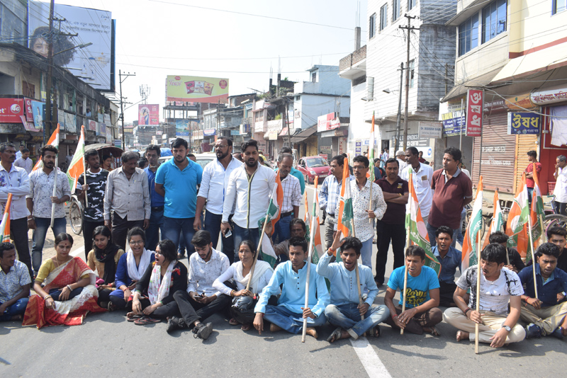 শ্লীলতাহানির মামলায় বিজেপির নেতা ও নেত্রীকে গ্রেপ্তারের দাবীতে পথ অবরোধ যুব কংগ্রেসের