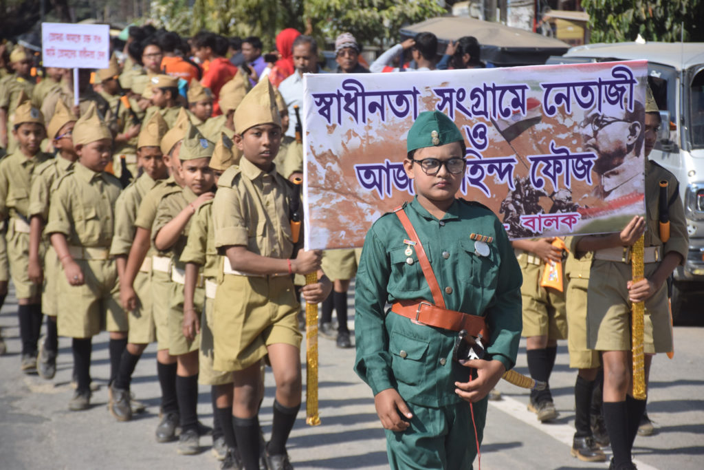 এদিকে নেতাজির জন্মজয়ন্তী উপলক্ষ্যে মূল অনুষ্ঠান হয়েছে রাজধানী আগরতলার নেতাজি সুভাষ বিদ্যানিকেতন ময়দানে। প্রতি বছরের মতো এ-বছরও স্কুলের উদ্যোগে বর্ণাঢ্য কর্মসূচির আয়োজন করা হয়। নেতাজি সুভাষ বসুর ১২৩-তম জন্মজয়ন্তী উপলক্ষ্যে বুধবার সকালে নেতাজি সুভাষ বিদ্যানিকেতন থেকে শোভাযাত্রা বের হয়। তা শহরের বিভিন্ন পথ পরিক্রমা করে। এদিন বিদ্যালয়ের ২৬টি শাখায় ছাত্রছাত্রীরা এই শোভাযাত্রায় অংশগ্রহণ করেছে। সকাল ৮-টায় পতাকা উত্তোলনের মধ্য দিয়ে অনুষ্ঠানের সূচনা করেন শিক্ষামন্ত্রী রতনলাল নাথ। এর পর স্কুলের ময়দান থেকে শোভাযাত্রা বের হয়েছে। প্রতিবারের মতো এ-বারও বিভিন্ন বিদ্যালয় ও প্রতিষ্ঠানের পক্ষ থেকে ট্যাবলো বের করা হয়েছিল। এ-বছর শোভাযাত্রায় ৮-টি ট্যাবলো বের হয়। ময়দান থেকে শুরু হয়ে শোভাযাত্রাটি শহরের বিভিন্ন পথ যেমন পোস্ট অফিস চৌমুহনি, প্যারাডাইস চৌমুহনি, আইজিএম চৌমুহনী হয়ে কামান চৌমুহনি, এমজি বাজারের নেতাজি কর্নার হয়ে আবার স্কুলে প্রাঙ্গণে এসে শেষ হয়। এদিকে, নেতাজি সুভাষচন্দ্র বসুর ১২৩-তম জন্মজয়ন্তী উপলক্ষ্যে প্রতিবছরের মতো এ-বছরও জিরানিয়া মহকুমার কড়ইবনে অবস্থিত নেতাজি সুভাষ প্রোগ্রেসিভ হাইস্কুলের উদ্যোগে নানা ধরনের কর্মসূচি অনুষ্ঠিত হয়েছে। এ-দিন সকালে প্রথমে পতাকা উত্তোলন করা হয়। এর পর নেতাজির প্রতিকৃতিতে মাল্যদান। সব শেষে স্কুল থেকে একটি শোভাযাত্রা বের হয় যা বিভিন্ন পথ পরিক্রমা করে আবার বিদ্যালয়ে গিয়ে শেষ হয়েছে বলে জানা গেছে।