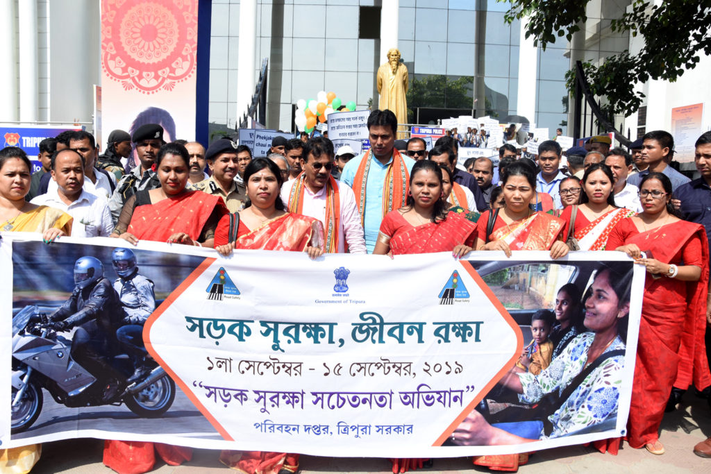 ত্রিপুরা সরকারের পরিবহণ দফতরের উদ্যোগে ১৫ দিনব্যাপী সড়ক সুরক্ষা সচেতনতা অভিযান শুরু হয়েছে৷ আগরতলার রবীন্দ্র শতবার্ষিকী ভবনে এ-উপলক্ষ্যে প্রথমে এক আলোচনাসভা অনুষ্ঠিত হয়৷ এর পর হয় এক শোভাযাত্রা৷
