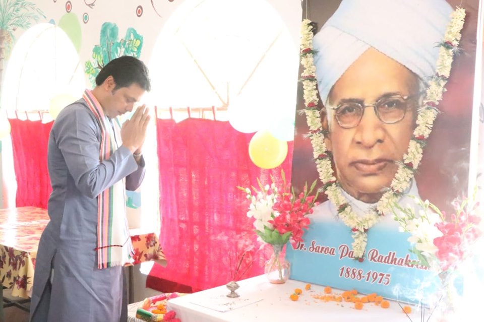৫৮-তম শিক্ষক দিবস উদযাপন উপলক্ষ্যে মুখ্যমন্ত্রী বিপ্লব কুমার দেব আজ আগরতলার শিশুবিহার উচ্চ মাধ্যমিক বিদ্যালয়ের একাদশ শ্রেণির শিক্ষার্থীদেরকে অনুপ্রেরণামূলক পাঠদান করেন৷ শুরুতেই মুখ্যমন্ত্রী দেব ভারতের প্রাক্তন রাষ্ট্রপতি এবং মহান দার্শনিক ড় সর্বেপল্লী রাধাকৃষ্ণণের প্রতিকৃতিতে পুষ্পার্ঘ্য অর্পণ করে শ্রদ্ধা নিবেদন করেন৷