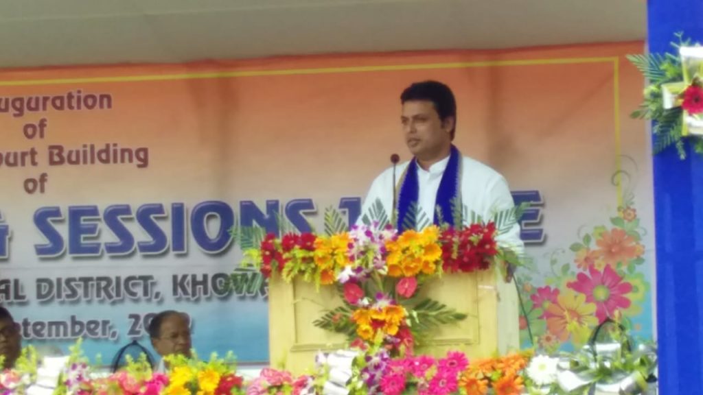 জেলা ও দায়রা আদালতের নতুন ভবনের উদ্বোধন করে মুখ্যমন্ত্রী দেব বলেন, বর্তমান সরকারের প্রধান দায়িত্ব হচ্ছে জনগণকে স্বচ্ছ প্রশাসন উপহার দেওয়া৷ সরকার সেই লক্ষ্যে বেশ কিছু উল্লেখযোগ্য পদক্ষেপ গ্রহণ করেছে৷ তিনি বলেন, আমাদের লক্ষ্য হচ্ছে আগামী ৩ বছরে রাজ্যকে একটি মডেল রাজ্য হিসাবে গড়ে তোলা৷ জনকল্যাণে রূপায়িত কর্মসূচি নির্দিষ্ট সময়ের মধ্যেই শেষ করতে হবে৷ তিনি বলেন, মেধা, সততা ও নিষ্ঠার সাথে কাজ করলে রাজ্যকে মডেল রাজ্য হিসাবে গড়ে তোলা সম্ভব৷ এজন্য চাই কর্মসংসৃকতি ও গুণগত কাজ৷ মুখ্যমন্ত্রী বলেন, রাজ্যকে নেশামুক্ত করার লক্ষ্যে যে অভিযান শুরু হয়েছিল তাতে অনেকটাই সাফল্য এসেছে৷ নেশাসামগ্রীর কারবার ছাড়া অন্য পথেও রোজগার করা সম্ভব৷ আর এতেই সমাজের মঙ্গল৷ কারণ নেশার কারণে মহিলাদের উপর নির্যাতন বৃদ্ধি পায়৷ মুখ্যমন্ত্রী নেশা কারবারি, কালোবাজারি ও মহিলাদের উপর নির্যাতনকারীদের বিরুদ্ধে রুখে দাঁড়াতে সকলের প্রতি আহ্বান জানান৷