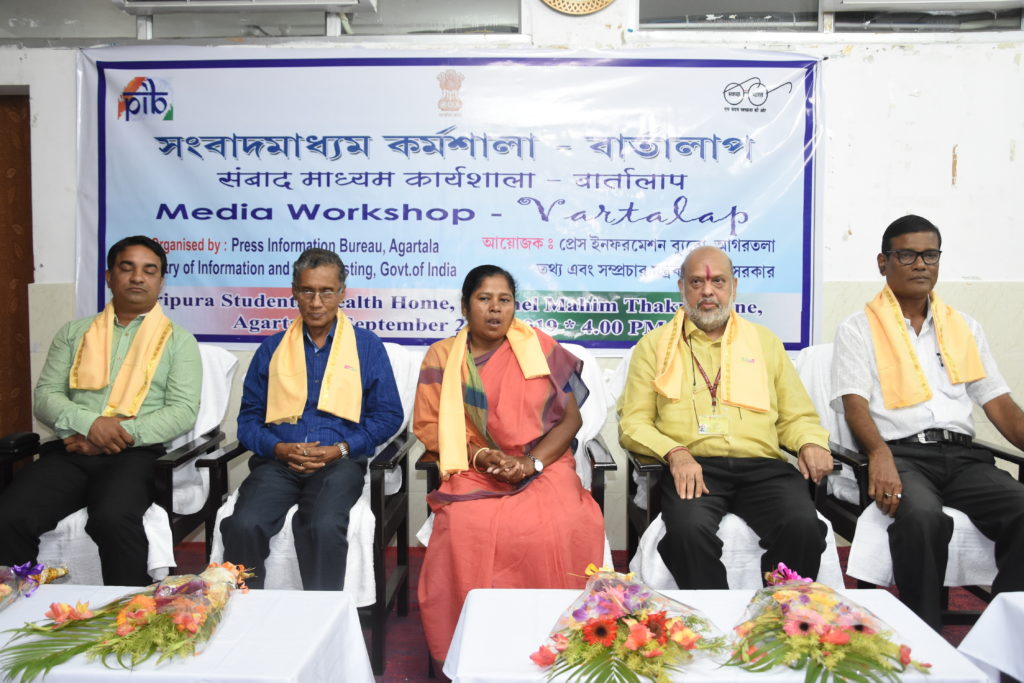 নিজস্ব প্রতিনিধি, আগরতলা, ২৪ সেপ্ঢেম্বর৷৷ সাংবাদিকদের দক্ষতা বিকাশের লক্ষ্যে প্রেস ইনফরমেশন ব্যরো আগরতলার উদ্যোগে আজ একদিবসীয় সংবাদমাধ্যম কর্মশালা-বার্তালাপ অনুষ্ঠিত হয়৷ কর্ণেল মহিম ঠাকুর সরণিস্থিত ত্রিপুরা স্টুডেন্টস হেলথ হোমে আয়োজিত এই কর্মশালার উদ্বোধন করেন সাংসদ প্রতিমা ভৌমিক৷ বক্তব্য রাখতে গিয়ে তিনি বলেন, মানুষের কাছে পৌঁছানোর মাধ্যম হলো সংবাদমাধ্যম৷ দেশ গঠনের ক্ষেত্রে বলিষ্ঠ ভূমিকা রয়েছে সংবাদমাধ্যমের৷