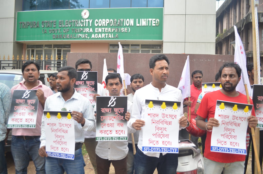 নিজস্ব প্রতিনিধি, আগরতলা, ৩ অক্টোবর ৷৷ শারদোৎসবে নিরবিচ্ছিন্ন বিদ্যুৎ পরিষেবা অক্ষুন্ন রাখার দাবিতে ৪টি বাম ছাত্র যুব সংগঠনের যৌথ উদ্যোগে বৃহস্পতিবার বিদ্যুৎ নিগমের আধিকারিকের অফিসের সামনে প্রতিবাদ বিক্ষোভ সংগঠিত করা হয়৷