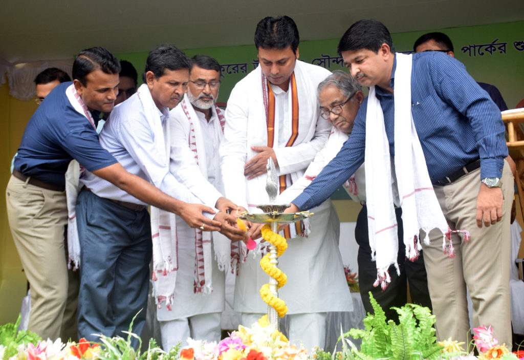 নিজস্ব প্রতিনিধি, আগরতলা, ২৩ অক্টোবর৷৷ আগরতলা শহরের উন্নয়নের লক্ষ্যে বিভিন্ন পরিকল্পনা নিয়ে কাজ করছে ত্রিপুরা সরকার৷ এর মধ্যে স্মার্ট সিটি প্রকল্পে রাস্তা নির্মাণ, জলাশয় সংরক্ষণ ও সৌন্দর্যায়নের লক্ষ্যে পার্ক নির্মাণ সহ বিভিন্ন পরিকাঠামো তৈরীর কাজ ইতিমধ্যেই শুরু করা হয়েছে৷ আজ মেলারমাঠের সাতলাখী পুকুরের উন্নয়নও সৌন্দর্যায়ণে নবনির্মিত পার্কের উদ্বোধন করে মুখ্যমন্ত্রী বিপ্লব কুমার দেব একথা বলেন৷ আমরুত প্রকল্পে এই পার্কটি তৈরী করতে ব্যয় হয়েছে ১ কোটি ২২ লক্ষ টাকা৷ উদ্বোধকের ভাষণে মুখ্যমন্ত্রী বলেন, প্রধানমন্ত্রী নরেন্দ্র মোদি দ্বিতীয়বারের জন্য দেশের দায়িত্বভার গ্রহণ করে বিভিন্ন রাজ্যের মুখ্যমন্ত্রীদের নিয়ে বৈঠকে জল সংরক্ষণের উপর প্রাধান্য দেন৷ তিনি যখন ২০১৪ সালে প্রথমবার দেশের দায়িত্বভার গ্রহণ করেন তখন তার মূল আহ্বান ছিল স্বচ্ছ ভারত অভিযান৷ আজ শুধু ভারতে নয়, বিশ্বব্যাপী জল সংরক্ষণের উপর আলোচনা চলছে৷