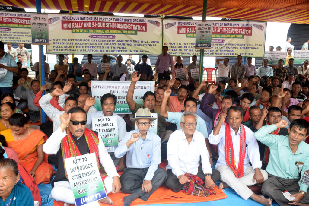 পূর্ব ঘোষিত সূচি অনুযায়ী আজ খুমুলুঙ-এ আইএনপিটি ও তার শাখা সংগঠন নাগরিকত্ব সংশোধনী বিলের প্রতিবাদে ৫ ঘন্টার গন অবস্থান করেছে৷ সাথে, ত্রিপুরায় বলি প্রথা নিষিদ্ধের হাইকোর্টের রায় পুনর্বিবেচনার দাবিও জানিয়েছে৷ আজ আইএনপিটি সাধারণ সম্পাদক অনিমেষ দেববর্মা বলেন, দুইটি দাবিকে সামনে রেখে এই গণবস্থানে বসেছে আইএনপিটি৷ তাঁর কথায়, নাগরিকত্ব সংশোধনী বিল প্রত্যাহারের দাবিকে মুখ্য হিসেবে রেখে এই গণবস্থানে মিলিত হয়েছি আমরা৷ তিনি বলেন, ২০১৬ সলথেকেই বিজেপি ওই বিল আনতে চাইছে৷ লোকসভায় ওই বিল পেশ করা হলেও বিরোধীদের তীব্র আপত্তিতে সেই বিল সিলেক্ট কমিটিতে পাঠিয়ে দেওয়া হয়েছিল৷ কিন্তু, এখন ফের ওই বিল লোকসভায় পেশ করার লক্ষ্যে বিজেপি প্রচার শুরু করেছে৷ তাঁর দাবি, লোকসভায় নাগরিকত্ব সংশোধনী বিল কোনভাবেই পেশ করতে দেওয়া হবে না৷ সাথে তিনি কেন্দ্রীয় সরকারের কাছে অনুরোধ রাখেন, উত্তর-পূর্বাঞ্চলের ভূমিপুত্রদের স্বার্থে ওই বিল প্রত্যাহার করা হোক৷