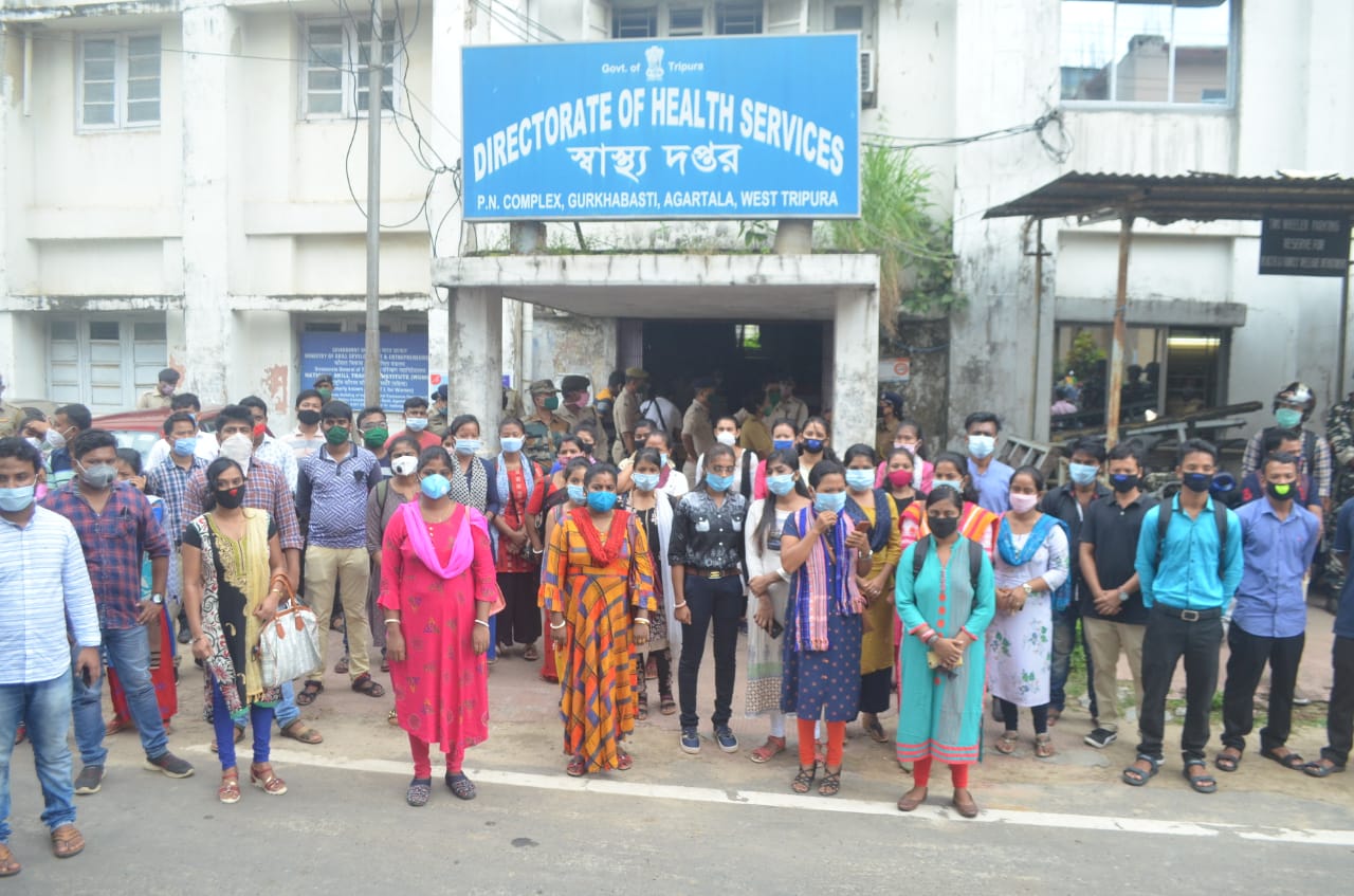 এএনএম ডিগ্রীধারী বেকারদের গণধর্ণা স্বাস্থ্য অধিকর্তার অফিসে