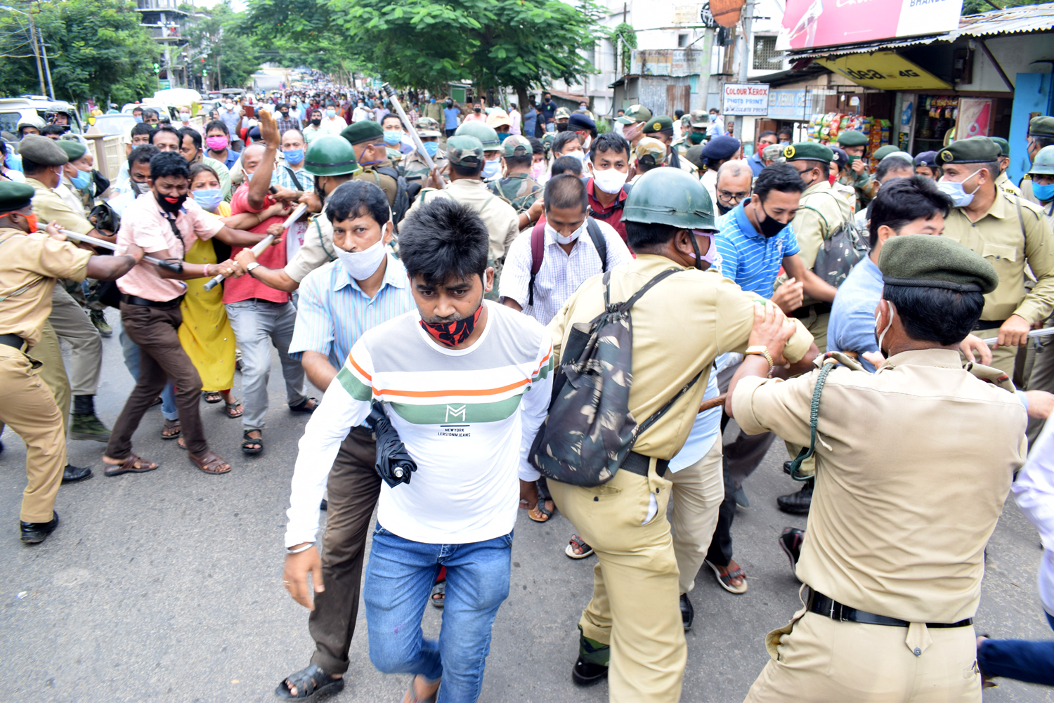 নিজস্ব প্রতিনিধি, আগরতলা, ২৩ সেপ্ঢেম্বর৷৷ বুধবার চাকরিচ্যুত শিক্ষকদের আন্দোলনে কেঁপে উঠেছে রাজধানী শহর আগরতলা৷ মহাকরণ অভিযানে গেলে পুলিশ লাঠিচার্জ করেছে৷ এতে বেশ কয়েকজন পুরুষ-মহিলা গুরুতর আহত হয়েছেন৷ পরিস্থিতি নিয়ন্ত্রণে আনতে মহাকরণের প্রধান ফটকের বাইরে আন্দোলনকারীদের ওপর জল কামান ছুঁড়েছে পুলিশ৷ তবুও তাদের থামানো যায়নি৷