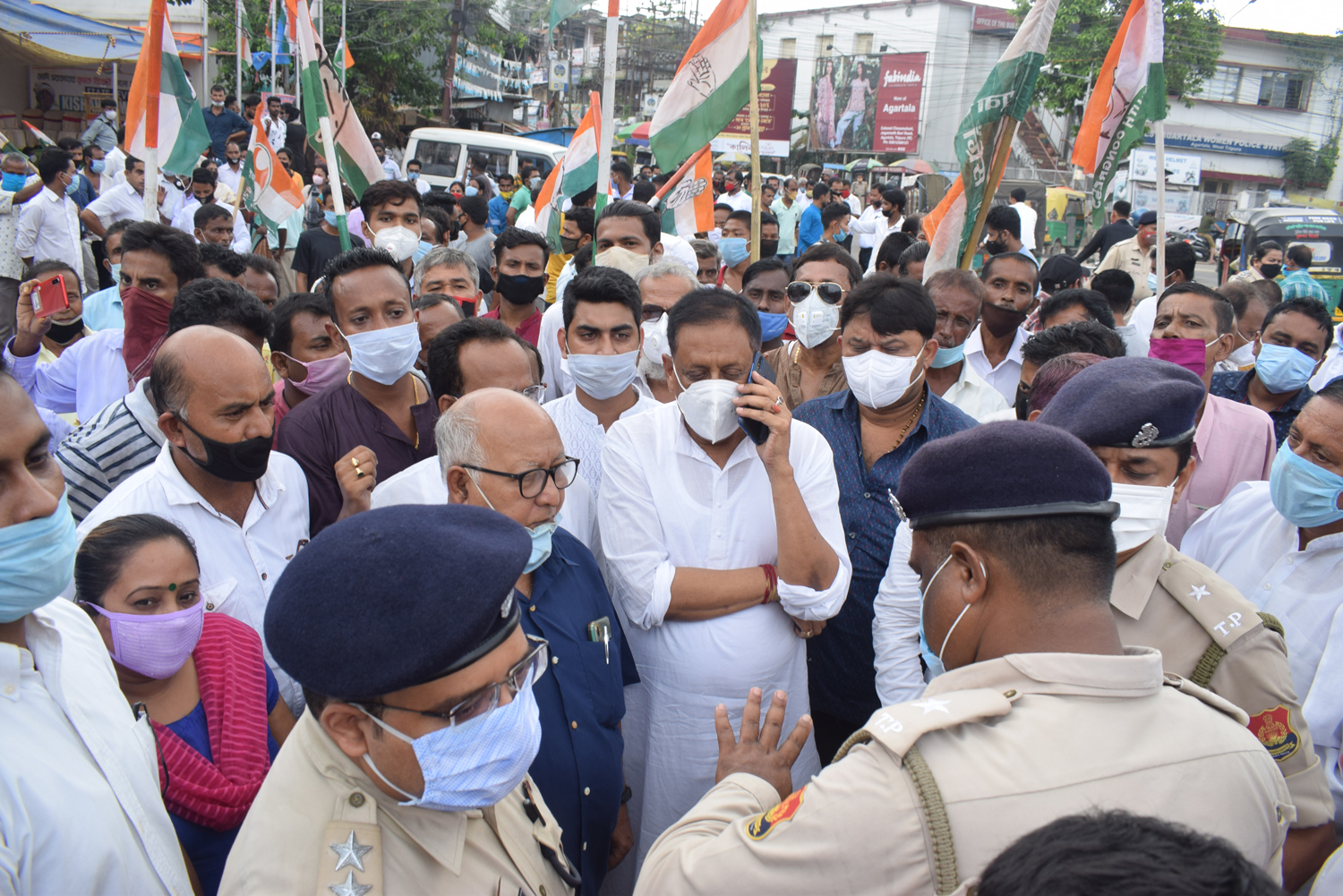 কৃষি বিলের প্রতিবাদে কংগ্রেসের আন্দোলন, পুলিশের সাথে ধস্তাধস্তি