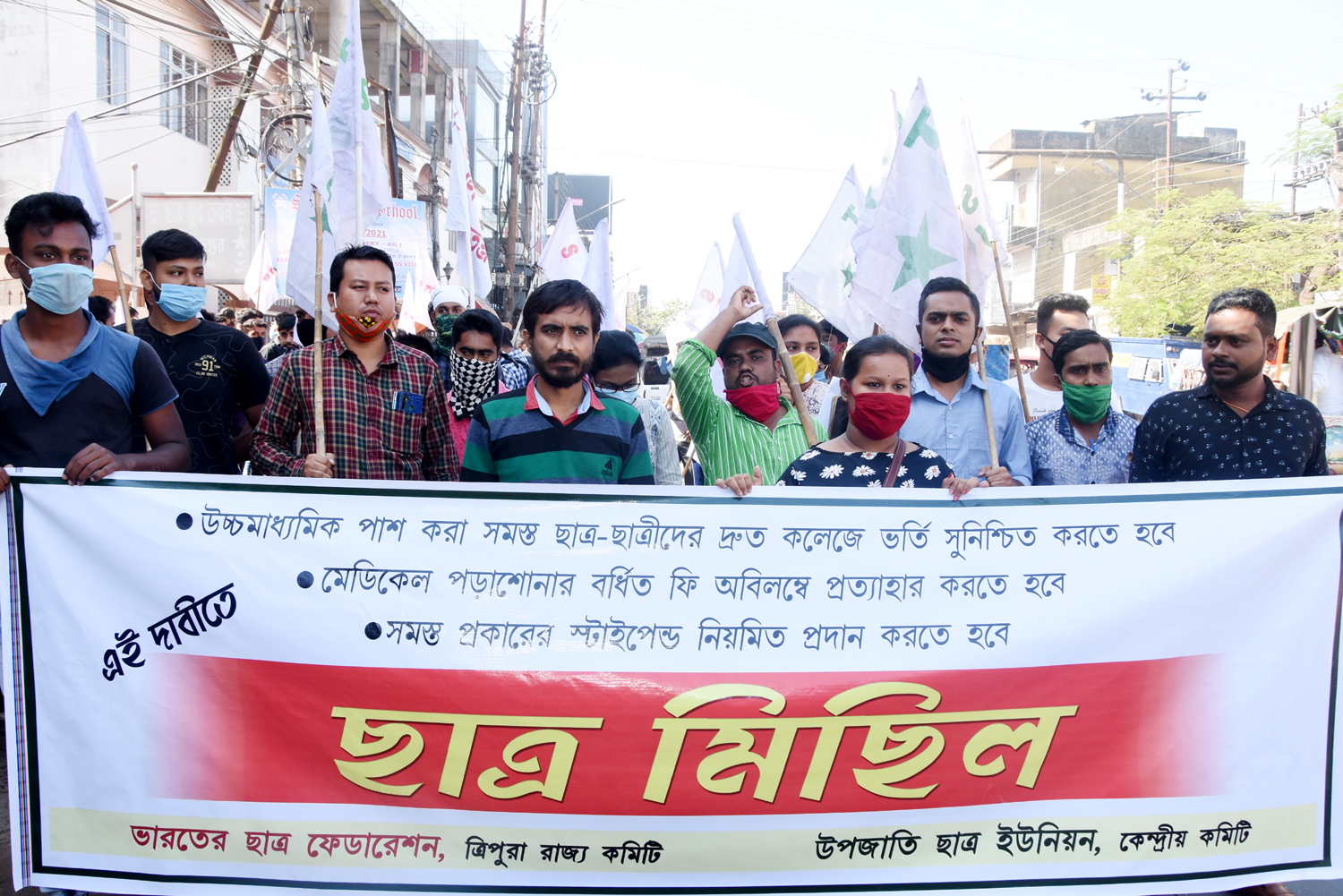 তিন দফা দাবীতে আগরতলায় বাম ছাত্র সংগঠনগুলির বিক্ষোভ মিছিল