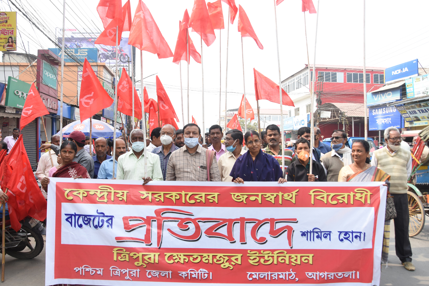 কেন্দ্রীয় বাজেটকে জনবিরোধী আখ্যা দিয়ে আগরতলায় মিছিল ক্ষেতমজুর ইউনিয়নের