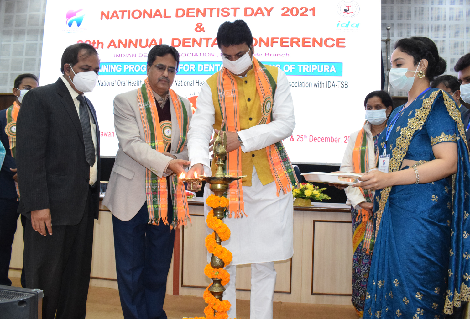 আজ প্রজ্ঞাভবনে ন্যাশনাল ডেন্টিস্ট ডে ও ইণ্ডিয়ান ডেন্টাল অ্যাসোসিয়েশন ত্রিপুরা শাখার ২০তম অ্যানুয়েল ডেন্টাল কনফারেন্সের উদ্বোধন করে বক্তব্য রাখতে গিয়ে একথা বলেন মুখ্যমন্ত্রী বিপ্লব কুমার দেব৷ এরপর সংগঠনের একটি মরণিকার আবরণ উন্মোচন করেন মুখ্যমন্ত্রী সহ অন্যান্য অতিথিগণ৷ অনুষ্ঠানে কোভিড অতিমারীর সময়ে কর্মক্ষেত্রে অনবদ্য অবদান রাখার জন্য বিভিন্ন জেলার দন্ত চিকিৎসক ও এই পরিষেবার সাথে যুক্ত অন্যান্যদের সম্মানিত করা হয়৷ অনুষ্ঠানে বক্তব্য রাখতে গিয়ে মুখ্যমন্ত্রী বলেন, রাজ্যের স্বার্থ সংশ্লিষ্ট বিভিন্ন বিষয় দ্রততার সঙ্গে নিষ্পত্তির লক্ষ্যে কাজ করছে সরকার৷ বর্তমান সরকারের ব্যবস্থাপনার ফলেই দীর্ঘ বছর পর ত্রিপুরা মেডিক্যাল কলেজের জন্য জমির বন্দোবস্ত হয়েছে৷ ইতিমধ্যেই দন্ত চিকিৎসার ক্ষেত্রে আরও অগ্রগতির লক্ষ্যে দন্ত চিকিৎসক নিয়োগের সিদ্ধান্ত গ্রহণ করা হয়েছে৷