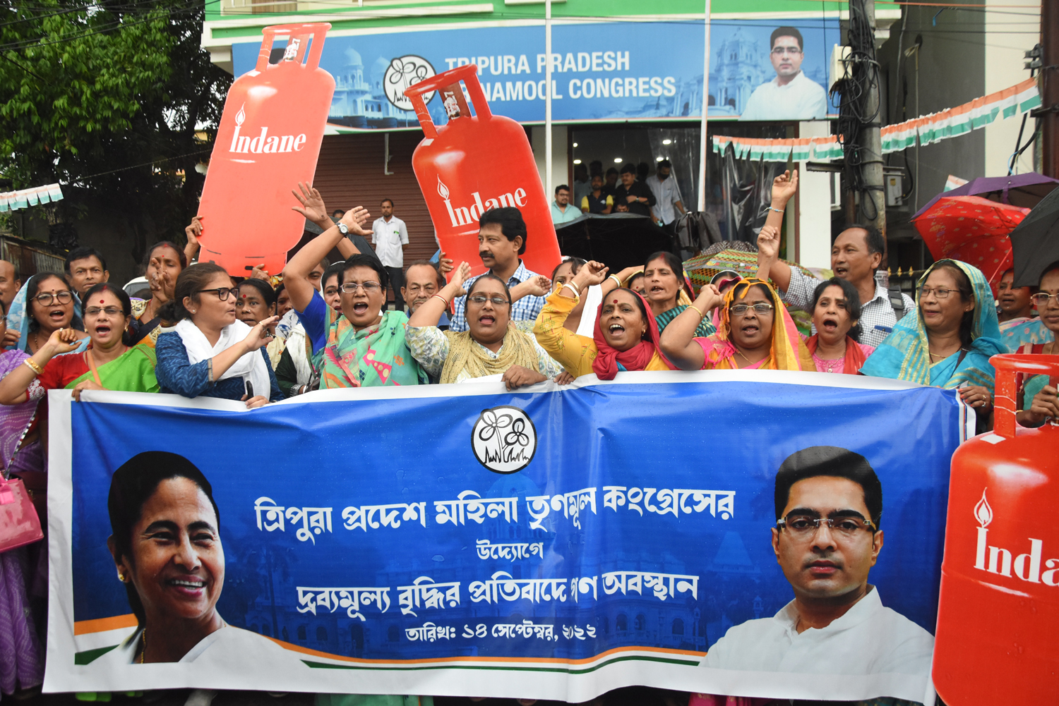 আগরতলা, ১৪ সেপ্টেম্বর : রাজ্যে দ্রব্যমুল্য বৃদ্ধির প্রতিবাদে সরব হয়েছে প্রদেশ মহিলা তৃণমূল কংগ্রেস। আজ ত্রিপুরা প্রদেশ মহিলা তৃণমূল কংগ্রেসের পক্ষ থেকে মূল্যবৃদ্ধির প্রতিবাদে এক বিক্ষোভ কর্মসূচী পালন করা হয়েছে।