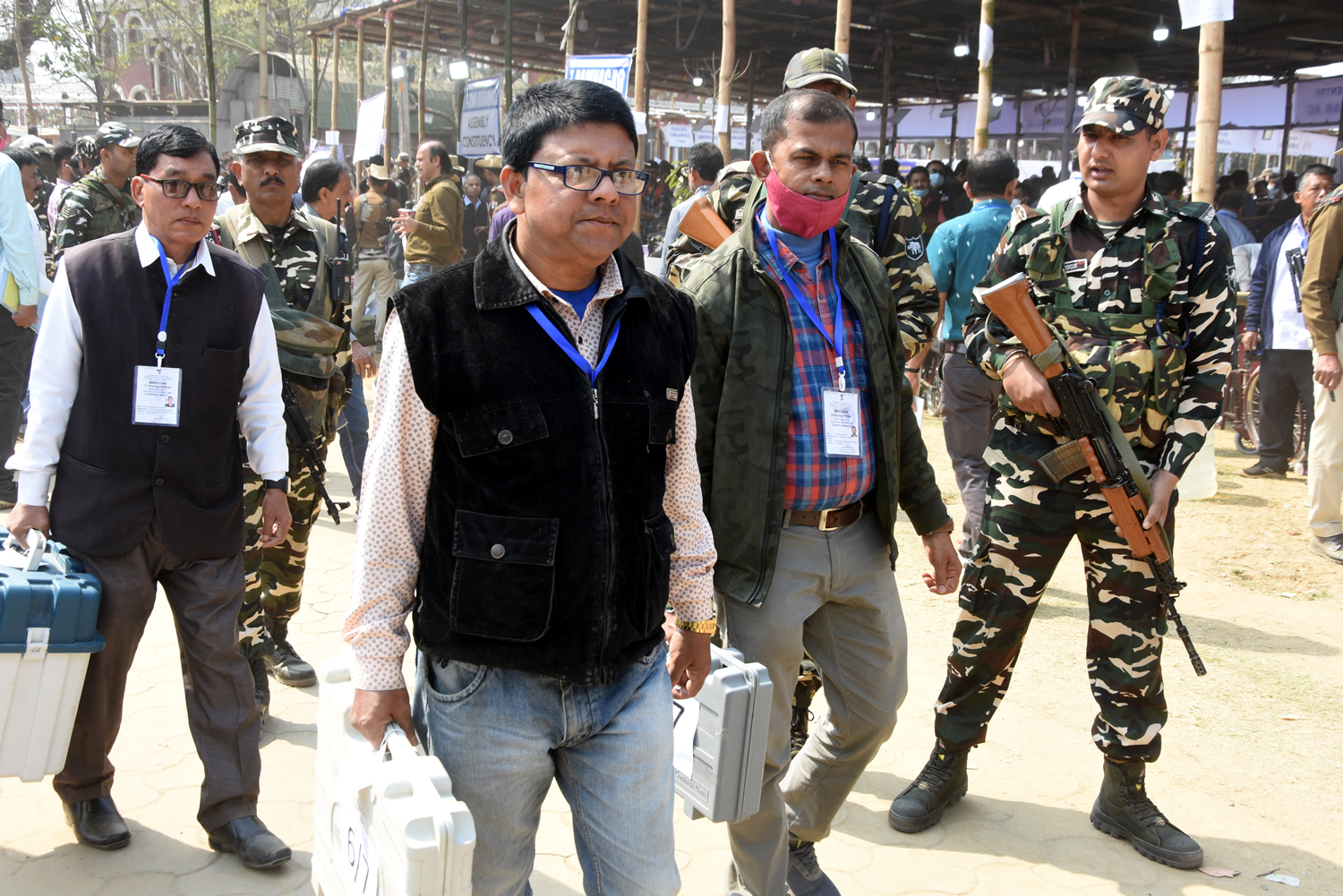 ভোট কেন্দ্রের উদ্দেশ্যে রওনা হয়েছেন ভোট কর্মী সহ নিরাপত্তা বাহিনী