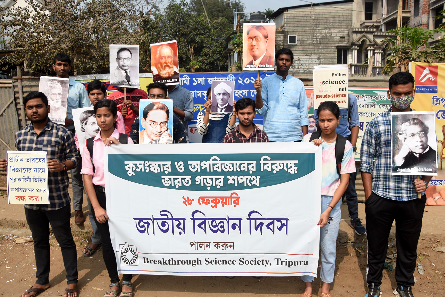 নিজস্ব প্রতিনিধি, আগরতলা, ২৮ ফেব্রুয়ারী৷৷ ড্রপ গেট এলাকায় ব্রেক থ্রু সায়েন্স সোসাইটি উদ্যোগে মঙ্গলবার কুসংস্কার ও অপবিজ্ঞানের বিরুদ্ধে ভারত গড়ার শপথে জাতীয় বিজ্ঞান দিবস পালন করা হয়৷ সমাজ ব্যবস্থাকে কুসংস্কারের হাত থেকে রক্ষা করে বিজ্ঞানমনস্ক করে তোলার লক্ষ্যে সপ্তাহব্যাপী প্রচার কর্মসূচি পালন করেছে ব্রেক থ্রো সাইন্স সোসাইটি৷ ২৮ ফেব্রুয়ারি জাতীয় বিজ্ঞান দিবসে আগরতলা ড্রপ গেট এলাকায় সোসাইটির উদ্যোগে এক সচেতনতামূলক কর্মসূচি পালন করা হয়৷ এদিন এই কর্মসূচিতে অংশ নিয়ে সোসাইটির কর্মকর্তারা জানান কুসংস্কার ও অপবিজ্ঞানের বিরুদ্ধে সুস্থ সবল ভারত গড়ার লক্ষ্যেই বিজ্ঞান দিবস পালনের উদ্যোগ নেওয়া হয়েছে৷ জনগণকে কুসংস্কার মুক্ত করে বিজ্ঞানমনস্ক করে তোলার লক্ষ্যেই জাতীয় বিজ্ঞান দিবস পালন করা হয়৷