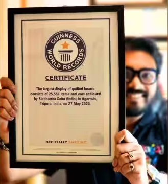 কুইলিং পেপার দিয়ে হৃদয় তৈরি করে গ্রিনিজ বুক অফ ওয়ার্ল্ড এ নাম নথিভুক্ত করলেন সিদ্ধার্থ