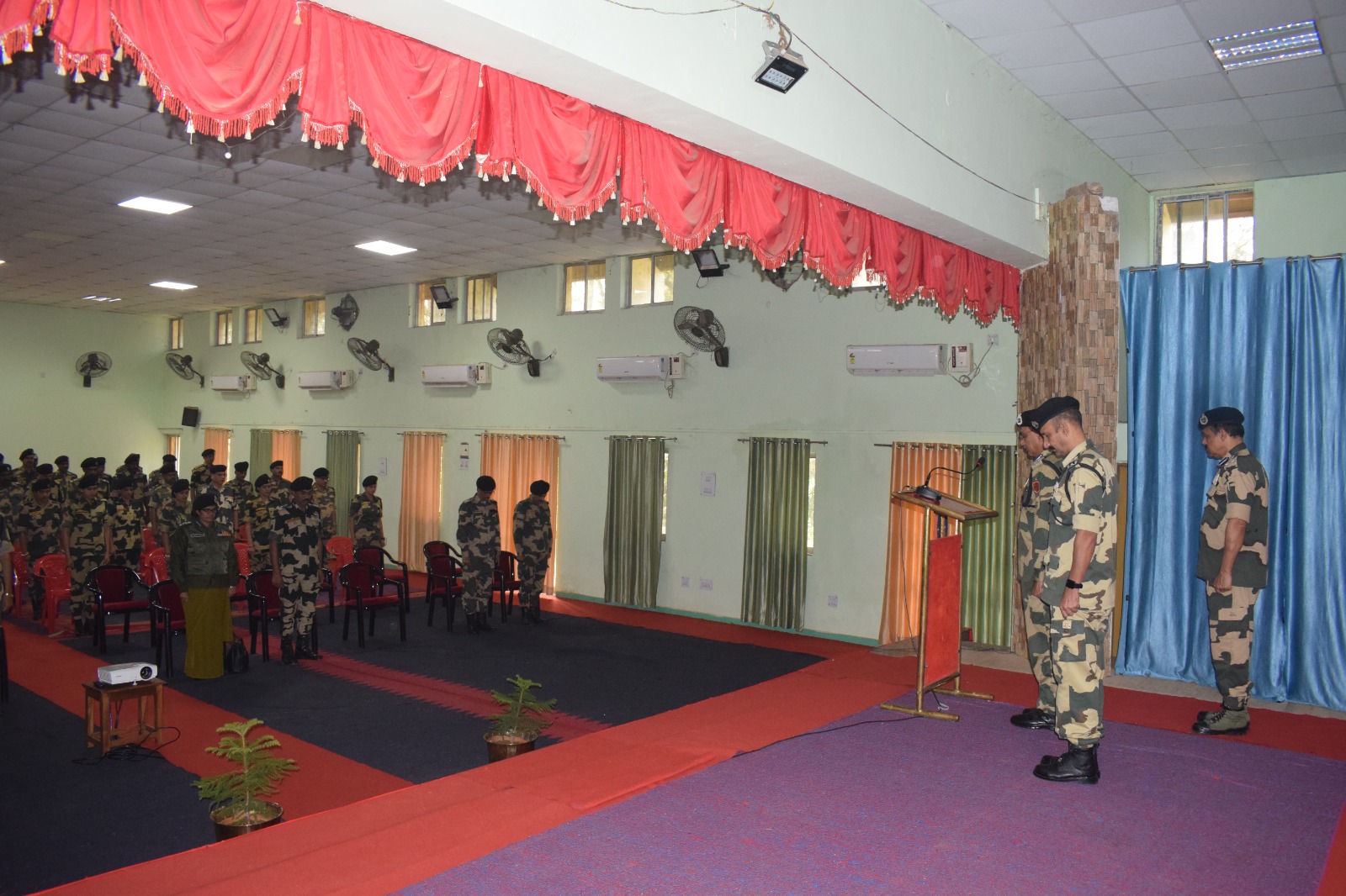 আগরতলা, ১৬ ডিসেম্বর : শালবাগান স্থিত ফ্রন্টিয়ার হেডকোয়ার্টারে সীমান্ত নিরাপত্তা বাহিনী ১৯৭১ সালের যুদ্ধের শহীদদের প্রতি শ্রদ্ধা নিবেদন করেন। শহীদদের স্মরণে দুই মিনিট নীরবতা পালন করা হয়েছে। এদিনের অনুষ্ঠানে সভাপতিত্ব করেন শ. রাম কৃপাল সিং, ডিআইজি (পিএসও), ত্রিপুরা ফ্রন্টিয়ারের দায়িত্বপ্রাপ্ত আইজি। অনুষ্ঠানে বিএসএফের অন্যান্য ঊর্ধ্বতন কর্মকর্তা ও সৈন্যরা উপস্থিত ছিলেন।