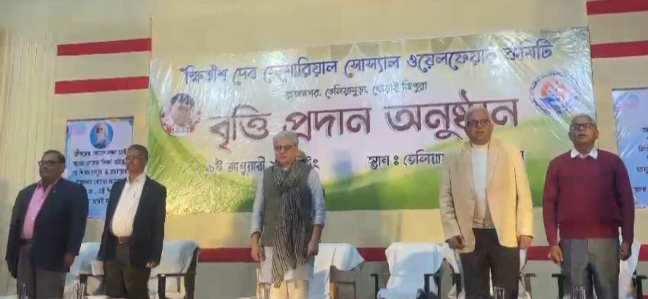 আগরতলা, ৯ জানুয়ারি: তেলিয়ামুড়ার চিত্রাঙ্গদা কলা কেন্দ্রে ব্যাপক উৎসাহের সাথে ক্ষিতীশ দেব মেমোরিয়াল সোশ্যাল ওয়েলফেয়ার কমিটি আয়োজিত বৃত্তি প্রদান অনুষ্ঠান আয়োজিত হয়। এই অনুষ্ঠানে প্রধান অতিথি হিসেবে রাজ্যের প্রাক্তন উপ মুখ্যমন্ত্রী তথা বর্তমানে তেলেঙ্গানার রাজ্যপাল যিষ্ণু দেব বর্মন উপস্থিত ছিলেন।