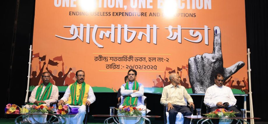 মুখ্যমন্ত্রী ডাঃ সাহা বলেন, প্রাক্তন রাষ্ট্রপতি রামনাথ কোবিন্দের নেতৃত্বে যে উচ্চ পর্যায়ের কমিটি গড়া হয়েছিল তাতে সদস্য হিসেবে ছিলেন স্বরাষ্ট্রমন্ত্রী অমিত শাহ, গুলাম নবি আজাদ, হরিশ সালভে সহ বিশিষ্ট ব্যক্তিগণ। আর ২০২৪ সালের ১৮ সেপ্টেম্বর কেন্দ্রীয় মন্ত্রিসভায় উচ্চ পর্যায়ের কমিটির সুপারিশ গ্রহণ করা হয়। আমরা দেখেছি বিশ্বের অন্যান্য দেশেও এধরণের ‘এক দেশ, এক নির্বাচন’ হয়। যেমন ব্রাজিল, সুইডেন, বেলজিয়াম, সাউথ আফ্রিকা, জার্মানি, জাপান, ইউএসএ, ইন্দোনেশিয়া, ফিলিপিন্স সহ বিভিন্ন দেশে এক দেশ এক ভোট অনুষ্ঠিত হয়। সেক্ষেত্রে আমাদের দেশে কেন হবে না?