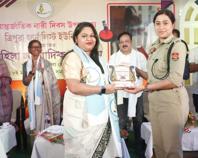 আন্তর্জাতিক নারী দিবস উপলক্ষে ত্রিপুরা জানালিস্ট ইউনিয়নের উদ্যোগে মহিলা সাংবাদিকদের সম্মাননা প্রদান, “মহিলাদের স্বশক্তিকরণ প্রতিদিনের প্রচেষ্টার মাধ্যমে অর্জিত হতে হবে” : ট্রাফিক এডিশনাল এসপি
