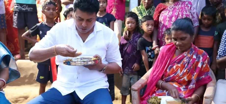 আগরতলা, ১৪ এপ্রিল: হরিশনগর চা বাগানে নিয়তি তাঁতির বাড়িতে বসে পাঁচন খেলেন প্রাক্তন মুখ্যমন্ত্রী তথা সাংসদ বিপ্লব কুমার দেব।