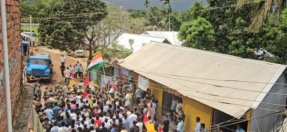 আগরতলা, ২৮ এপ্রিল: বিলোনিয়া বল্লামুখা এলাকায় আন্তর্জাতিক সীমানা নির্ধারণ আইনকে লঙ্ঘন করে বাংলাদেশ সীমান্তে বাঁধ নির্মাণ করছে। এরই প্রতিবাদে আজ বনকর উত্তর পাড়ে বিক্ষোভ কর্মসূচিতে সামিল হয়েছে তিপরা মথার কর্মী ও সর্মথকরা। এদিকে, খবর পেয়ে ঘটনাস্থলে ছুটে গিয়েছে পুলিশ এবং বিএসএফের উচ্চপদস্থ আধিকারিক এবং নিরাপত্তা কর্মীরা। ওই জমায়েত বল্লামুখা সীমান্তের দিকে যেতে চাইলে নিরাপত্তা কর্মীদের সাথে ধস্তাধস্তি হয়। দলের তরফ থেকে ইউনূসের পদত্যাগের দাবি করে।