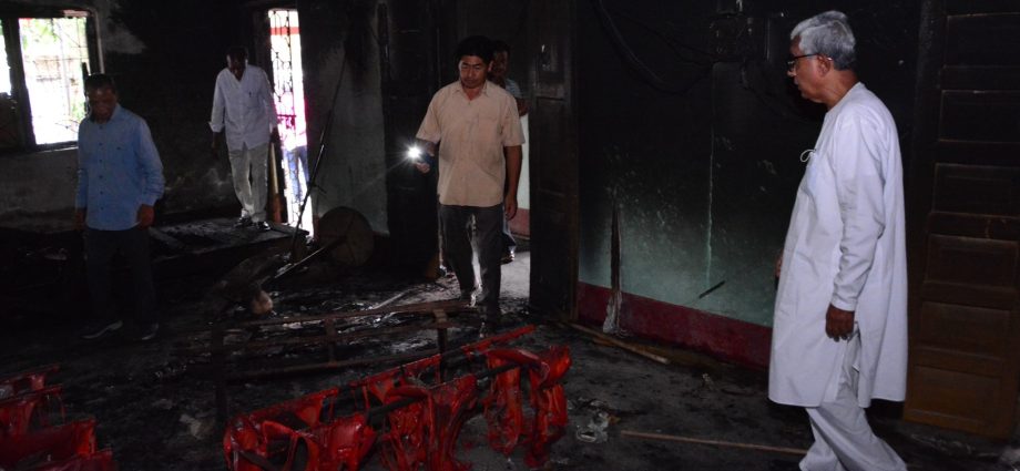 গতকাল দুর্বৃত্তদের লাগানো আগুনে মান্দাইয়ে সিপিএম পার্টি অফিস পুড়ে ছাই হয়ে গেছে। আজ সেই জতুগৃহ সরেজমিনে পরিদর্শন করতে যান প্রাক্তন মুখ্যমন্ত্রী মানিক সরকার। টিটিএএডিসি-র প্রাক্তন মুখ্য কার্যনির্বাহী সদস্য রাধাচরণ দেববর্মা-কে সাথে নিয়ে তিনি পার্টি অফিসের পুরোটাই ঘুরে দেখেছেন। এরপর তিনি সেখানে দলীয় কর্মী-সমর্থকদের উদ্দেশ্যে সংক্ষিপ্ত বক্তব্য রেখেছেন।