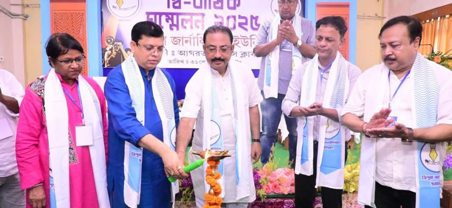 আগরতলা, ৩১ মে : ত্রিপুরা জার্নালিস্ট ইউনিয়নের দ্বিবার্ষিক রাজ্য সম্মেলন আজ আগরতলা প্রেসক্লাবে অনুষ্ঠিত হয়েছে। এদিন সম্মেলনের উদ্বোধন করেন সাংসদ রাজীব ভট্টাচার্য। তাছাড়া, বিশেষ অতিথি হিসেবে উপস্থিত ছিলেন ক্রীড়াও যুব কল্যাণ মন্ত্রী টিংকু রায়।