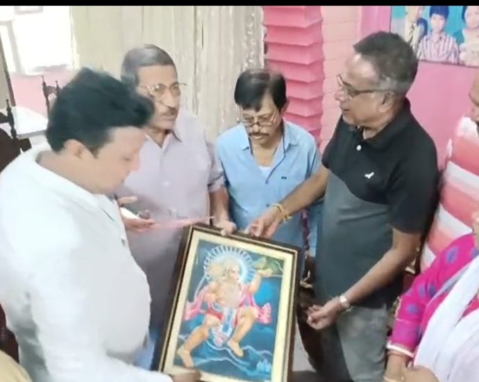 শংকর প্রসাদ দত্তের বাড়িতে বিজেপি কর্মীরদ, বাম নেতার হাতে তুলে দিয়েছেন হনুমান চালিশা ও মূর্তি