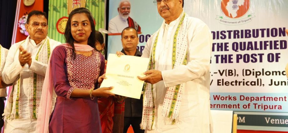 আগরতলা, ১৬ জুলাই: রাজ্যের সার্বিক উন্নয়ন, চাকরি প্রদান, স্বচ্ছতা, প্রতিশ্রুতির বাস্তবায়ন, জনজাতি উন্নয়নের লক্ষ্যে কাজ করছে বর্তমান সরকার। স্বচ্ছতা, মেধা ও যোগ্যতার নিরিখে যোগ্য প্রার্থীদের চাকরি প্রদান করছে সরকার। ২০১৮ থেকে এখন পর্যন্ত ডাই ইন হারনেস সহ মোট ১৯,৭৪২ জনকে নিয়মিত পদে চাকরি দিয়েছে এই সরকার। আজ আগরতলার মুক্তধারা প্রেক্ষাগৃহে পূর্ত দপ্তরের অধীনে জুনিয়র ইঞ্জিনিয়ার পদে নির্বাচিত প্রার্থীদের নিয়োগ পত্র বিতরণ অনুষ্ঠানে একথা বলেন মুখ্যমন্ত্রী প্রফেসর ডাঃ মানিক সাহা।