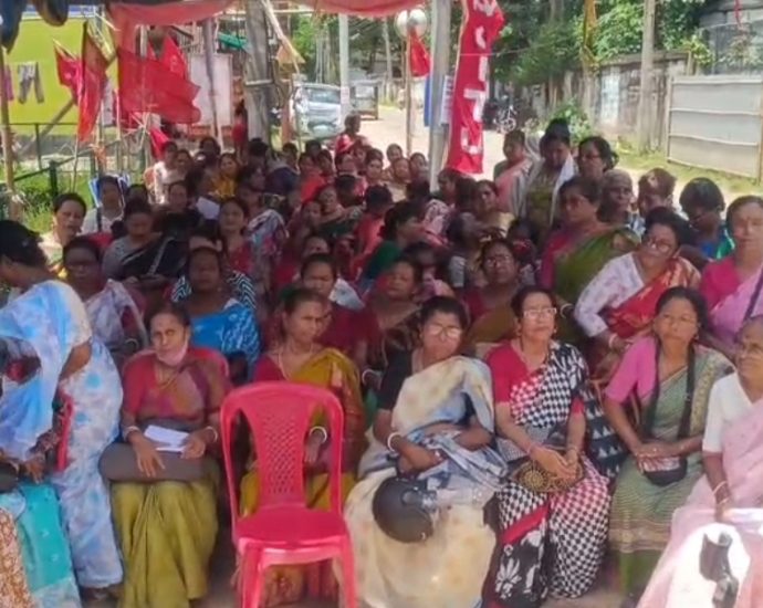 এফআরএস পদ্ধতি প্রত্যাহার সহ একাধিক দাবিতে গণঅবস্থান ত্রিপুরা অঙ্গনওয়াড়ি ওয়ার্কার্স এন্ড হেল্পার্স ইউনিয়নের