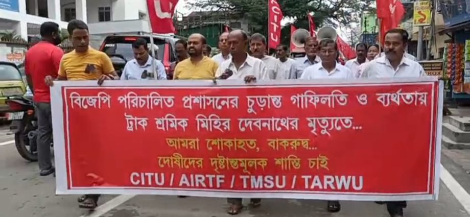আগরতলা, ৭ আগস্ট: বিজেপি পরিচালিত প্রশাসনের চূড়ান্ত গাফিলতি এবং ব্যর্থতায় লরি চালক মিহির দেবনাথের মৃত্যু হয়েছে। এমনটাই অভিযোগ তুলে জেলাশাসকের অফিসের সামনে বিক্ষোভে সামিল হয়েছে সিআইটিইউ। পাশাপাশি, সংগঠনের তরফ থেকে দোষীদের দৃষ্টান্তমূলক শাস্তির দাবি জানানো হয়েছে।