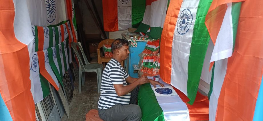 ধর্মনগর, ৯ আগস্ট: প্রতিবছরের মতো এবারও ধর্মনগরের কালীবাড়ি রোড এলাকার ব্যবসায়ী রূপম রায় জাতীয় পতাকা তৈরিতে ব্যস্ত হয়ে পড়েছেন।