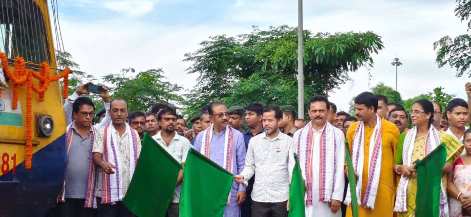 মন্ত্রীর শুক্লাচরন নোয়াতিয়ার ডাকে সারাদিয়ে জোলাইবাড়ীতে কাঞ্চনজঙ্ঘা এক্সপ্রেসের নতুন স্টপেজ দিলো কেন্দ্রীয় রেলমন্ত্রী। বৃহস্পতিবার থেকে এই নতুন স্টপিজ কার্যকর হয়। নতুন স্টপেজ পাবার খুশিতে আনন্দে মাতোয়ারাহয়ে জোলাইবাড়ী রেলষ্টেশনে এক অনুষ্ঠানের আয়োজন করা হয়। আজকের অনুষ্ঠানে উপস্থিত ছিলেন জোলাইবাড়ী বিধানসভা কেন্দ্রের বিধায়ক তথা মন্ত্রী শুক্লাচরন নোয়াতিয়া, জোলাইবাড়ী ব্লকের পঞ্চায়েতসমিতির চেয়ারম্যান তাপস দত্ত, শান্তির বাজার মহকুমাশাসক মনোজ সাহা, জোলাইবাড়ী ব্লকের বি এস সি চেয়ারম্যান অশোক মগ,বিশিষ্ট সমাজসেবী সুজিত দত্ত সহ অন্যান্যরা।