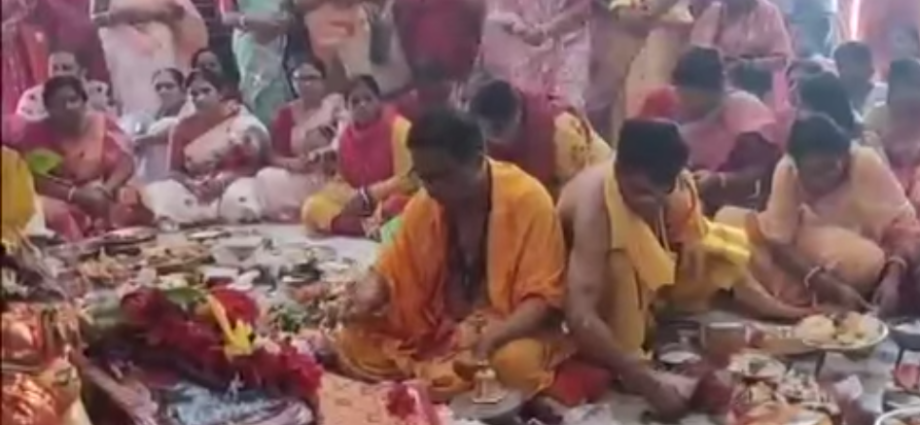 আগরতলা, ১৭ আগস্ট : ঐতিহ্য মেনে রবিবার আগরতলার দুর্গা বাড়িতে ঘটা করে অনুষ্ঠিত হলো মনসা মায়ের পূজা। শ্রাবণ মাসের সংক্রান্তি তিথিতে প্রতিবছর এই পূজার আয়োজন করা হয়। ভক্তদের বিশ্বাস, মনসা দেবী শিবের কন্যা এবং সর্পদেবী রূপে পূজিতা হন। এদিন দুর্গা বাড়ি প্রাঙ্গণে ভক্তদের সমাগম ছিল চোখে পড়ার মতো।