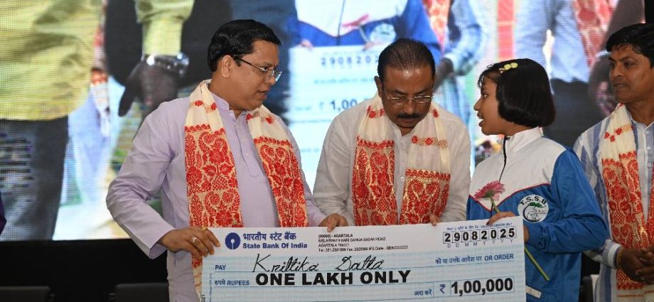 উপস্থিত ছিলেন ত্রিপুরা ক্রীড়া পর্ষদের সচিব সুকান্ত ঘোষ। অনুষ্ঠানে ২০২৪-২৫ অর্থবছরে ৬৮তম জাতীয় স্কুল গেমস, খেলো ইন্ডিয়া ইয়ুথ গেমস এবং জাতীয় স্তরের বিভিন্ন প্রতিযোগিতায় স্বর্ণ, রৌপ্য ও ব্রোঞ্জ পদক বিজয়ী বালক ও বালিকাদের সর্বোচ্চ ১ লক্ষ টাকার চেক ও সর্বনিম্ন ২৫ হাজার টাকার চেক দিয়ে পুরস্কৃত করা হয়। ক্রীড়ামন্ত্রী সহ অতিথিগণ তাদের হাতে পুরস্কার তুলে দেন। অনুষ্ঠান শুরুর আগে ক্রীড়ামন্ত্রী সহ অতিথিগণ হকির যাদুকর ধ্যানচাঁদের প্রতিকৃতিতে পুস্পার্ঘ অর্পণ করে শ্রদ্ধাজ্ঞাপন করেন। অনুষ্ঠানে ক্রীড়ামন্ত্রী সকলকে ‘ফিট ইন্ডিয়া’-র বিষয়ে শপথবাক্য পাঠ করান। সভাপতিত্ব করেন যুব বিষয়ক ও ক্রীড়া দপ্তরের অধিকর্তা এল ডার্লং।
