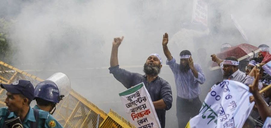 জাকির হোসেন, ঢাকা, ১৫ সেপ্টেম্বর: জাতীয়করণবঞ্চিত প্রায় পাঁচ হাজার বেসরকারি প্রাথমিক বিদ্যালয়ের স্বীকৃতির দাবিতে সোমবার বিকেলে ঢাকায় শিক্ষকদের মিছিলে জলকামান ও সাউন্ড গ্রেনেড ছোড়ে পুলিশ। জাতীয় প্রেস ক্লাব থেকে প্রধান উপদেষ্টার রাষ্ট্রীয় আবাস ‘যমুনা’ অভিমুখে যাত্রা করা মিছিল হাইকোর্ট সংলগ্ন কদম ফোয়ারা এলাকায় পৌঁছালে পুলিশ বাধা দেয়। পরে হুইসেল বাজিয়ে বিক্ষোভকারীদের পল্টনমুখী সরিয়ে দেওয়া হয়। আহত হয়েছেন কয়েকজন শিক্ষক।