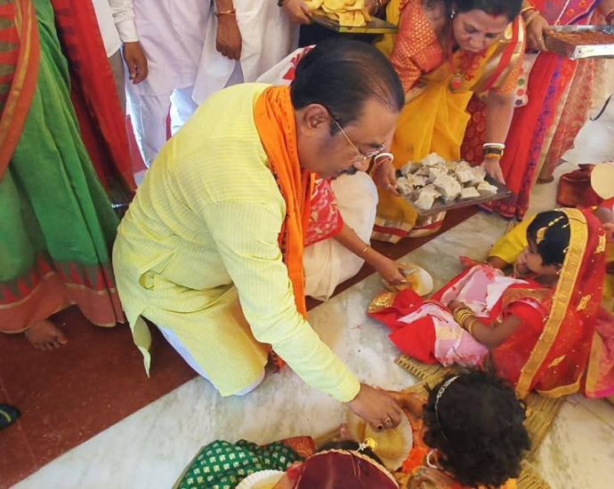 মোদীর ৭৫তম জন্মদিন উপলক্ষে ইন্দ্রনগর কালীবাড়িতে কুমারী পূজা