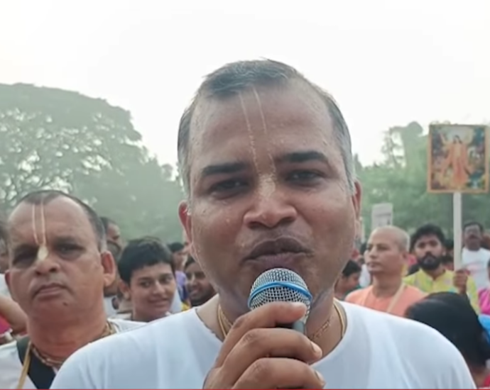 ইসকন মন্দিরের উদ্যোগে মহালয়ার প্রভাতে শোভাযাত্রা ও কীর্তন