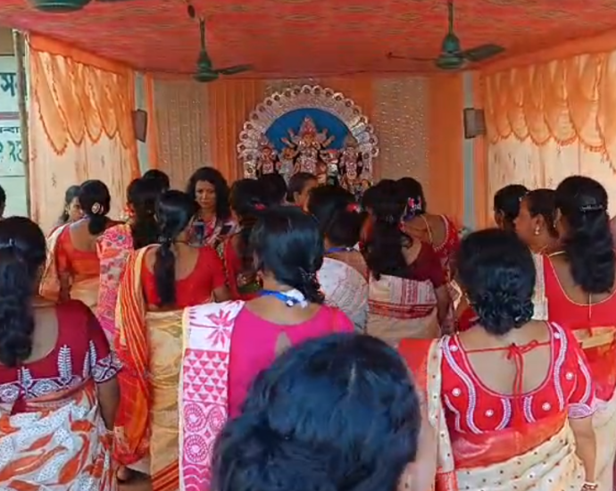 মহাষষ্ঠীর দিনে দুর্গা বোধনে মুখর আগরতলা
