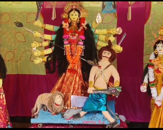 নিজ হাতে দুর্গা প্রতিমা বানিয়ে তাক লাগালো ১৫ বছরের কঙ্কজ, এলাকাজুড়ে প্রশংসার ঝড়