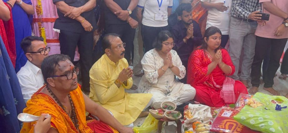মহানবমীতে দুর্গাবাড়িতে পূজার্চনায় সাংসদ রাজীব