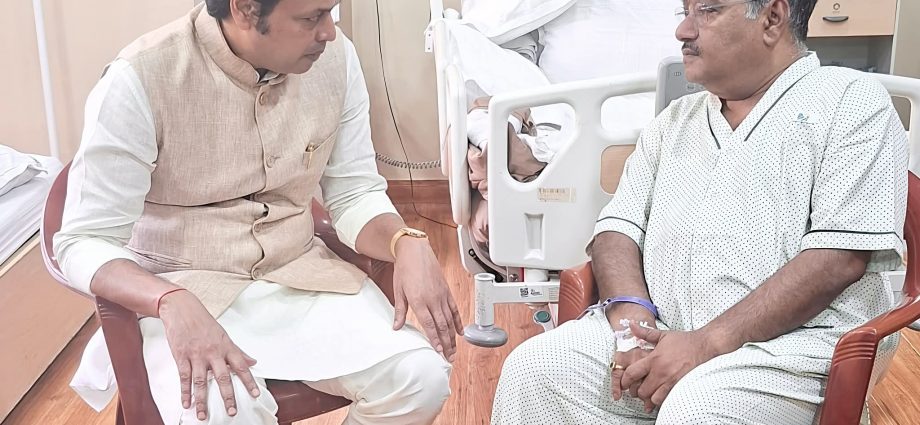 কলকাতা, ১৫ অক্টোবর: পশ্চিমবঙ্গ রাজ্য সভাপতি ও রাজ্যসভার সাংসদ শমীক ভট্টাচার্য শারীরিক অসুস্থতার কারণে বর্তমানে কলকাতার একটি বেসরকারি হাসপাতালে চিকিৎসাধীন রয়েছেন। তাঁর শারীরিক অবস্থার খোঁজখবর নিতে আজ হাসপাতালে যান ত্রিপুরার প্রাক্তন মুখ্যমন্ত্রী তথা রাজ্যসভার সাংসদ শ্রী বিপ্লব কুমার দেব।